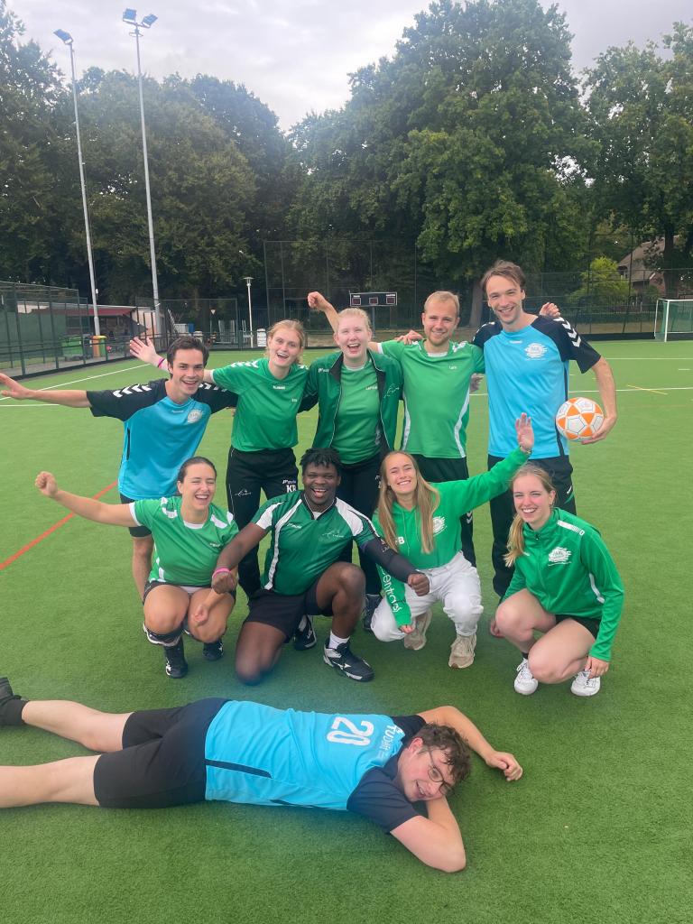 Traditiegetrouw werd op hemelvaartsdag het mixtoernooi georganiseerd! Dit jaar trommelde onze Erasmianen wel heel veel vrienden en familie op, er speelden namelijk wel 18 teams! Als ik het goed zeg was dit een recordaantal opgaves voor het mixtoernooi. Rond 12:30 kwam iedereen met veel enthousiasme voor de dag het terrein op in de meest geweldige outfits. Ieder team had zich namelijk gekleed naar het thema ‘foute stereotypes’.